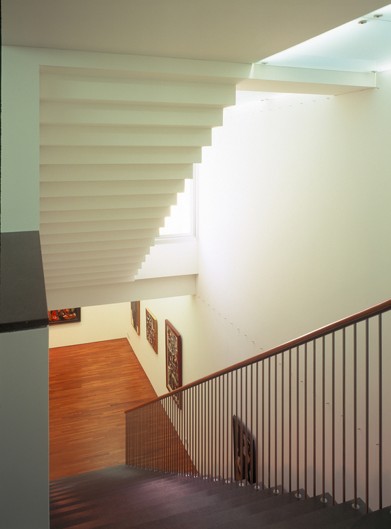Das Grundstück befindet sich in direkter Nachbarschaft zur Villa von Peter Behrens, dem 1901 erbauten Erstlingswerk des berühmten Architekten. Die besondere Herausforderung bestand darin, in unmittelbarer Nähe zur Mathildenhöhe, dieser einzigartigen Gesamtanlage des Jugendstils, eine architektonische Lösung zu finden.